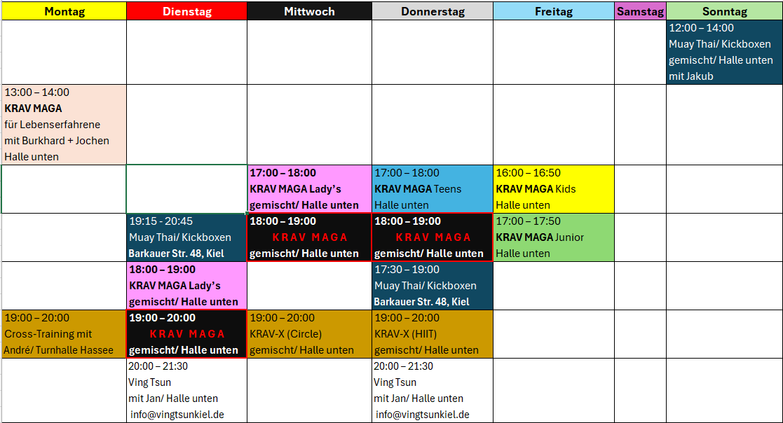 Die Öffnungszeiten entsprechen den Kurszeiten!